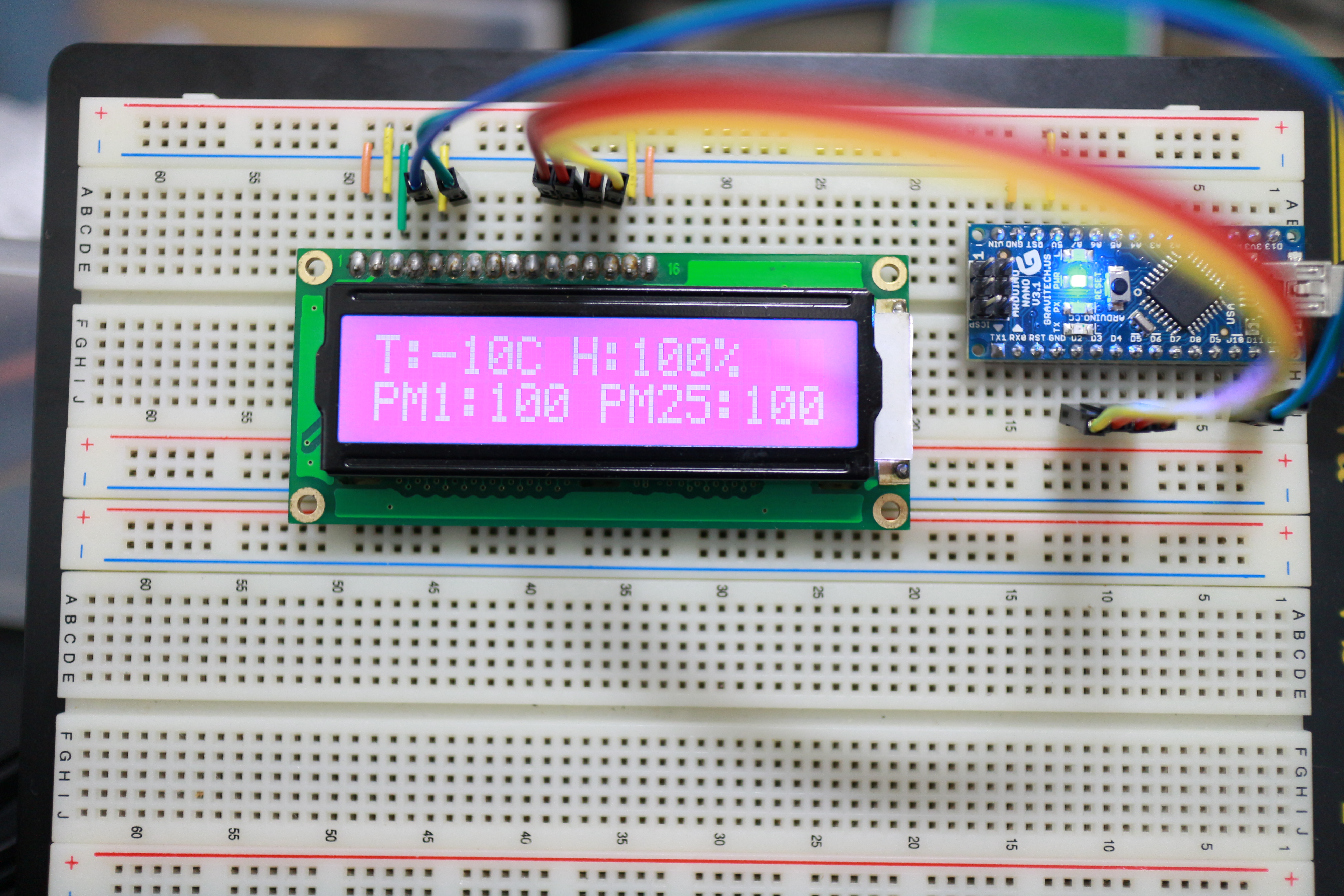 lcd.print("T:-10C H:100% R:50% PM12");