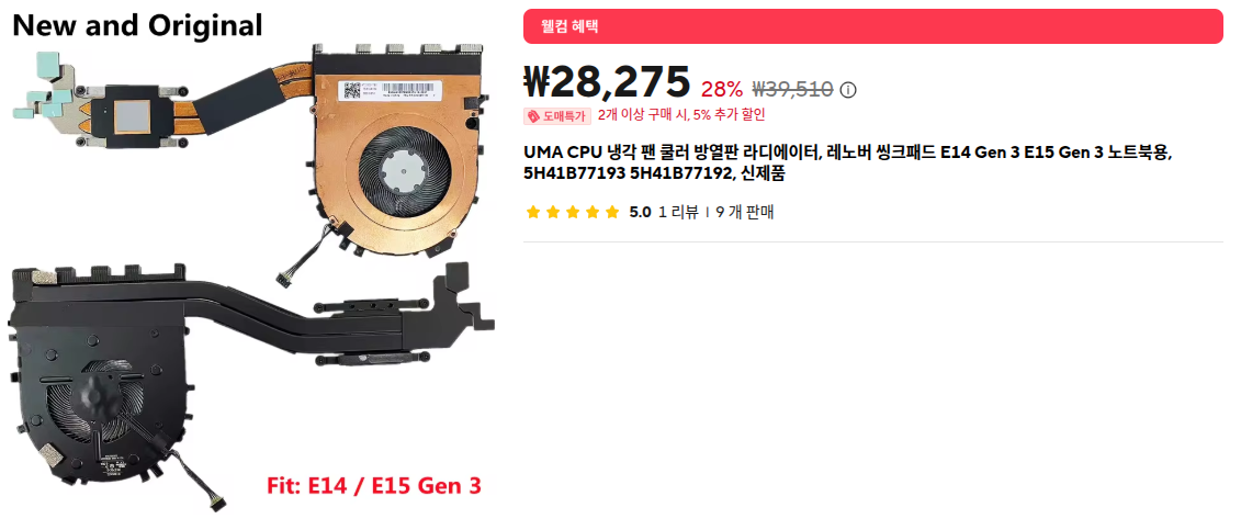 [링크 : https://www.amazon.com/HK-Part-Thinkpad-Cooling-Heatsink-5H40S72941/dp/B0B5R1XRV3]